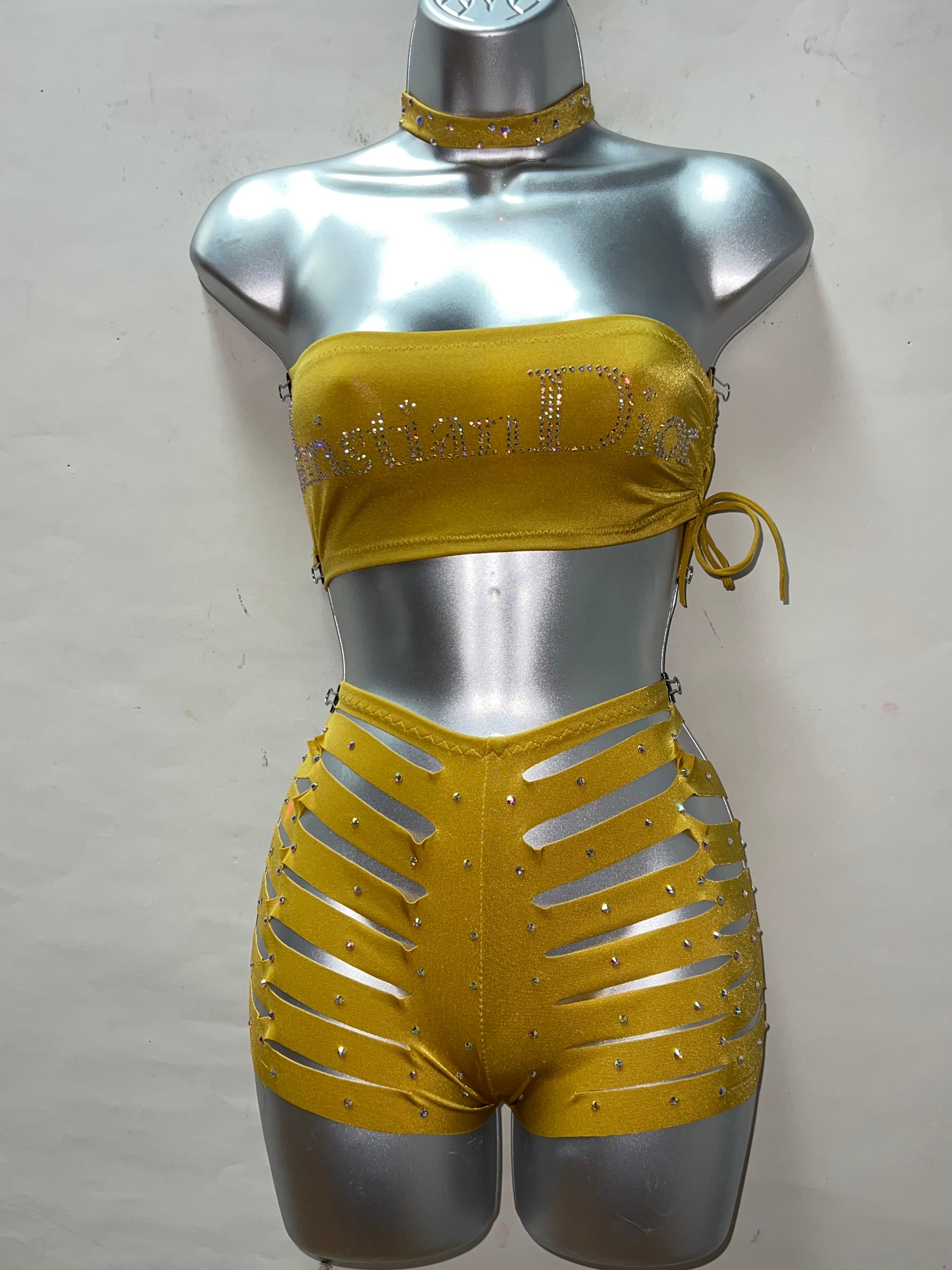 Three Piece High Waist Slit Short Set