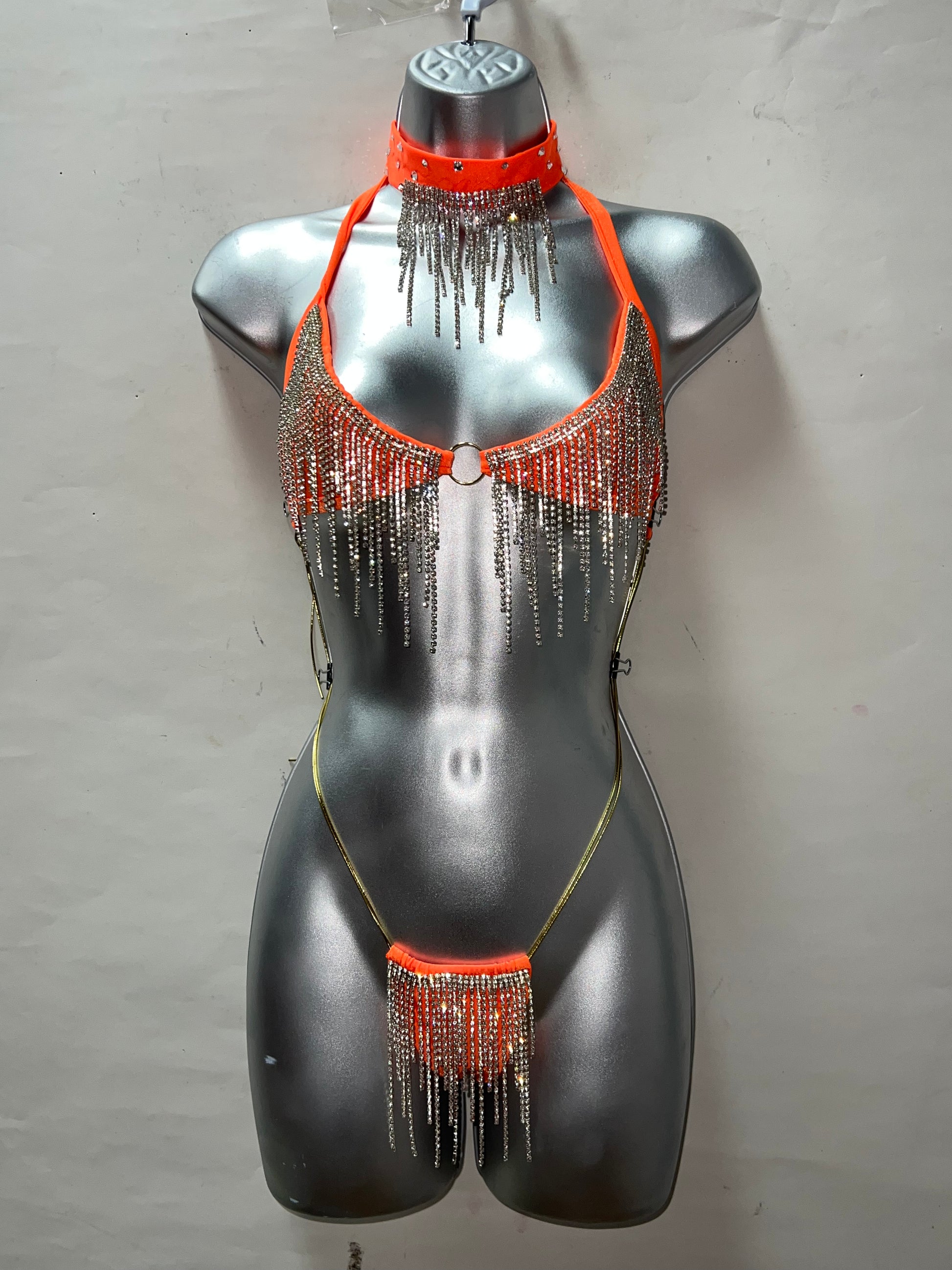 Three Piece Rhinestone Thong Set